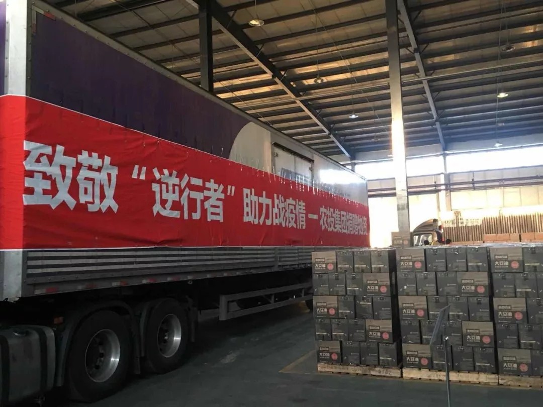 2月20日上午7時30分,滿載“金谷農場”品牌稻花香大米、一級豆油以及“龍江丁香花”品牌蘇打水等價值100萬元捐贈物資的多輛貨車從省農投集團駛出,駛向黑龍江省中醫(yī)藥大學附屬第二醫(yī)院南院(黑龍江省“小湯山”模式醫(yī)療救治中心)和哈爾濱醫(yī)科大學附屬四家醫(yī)院進行物資捐贈。
