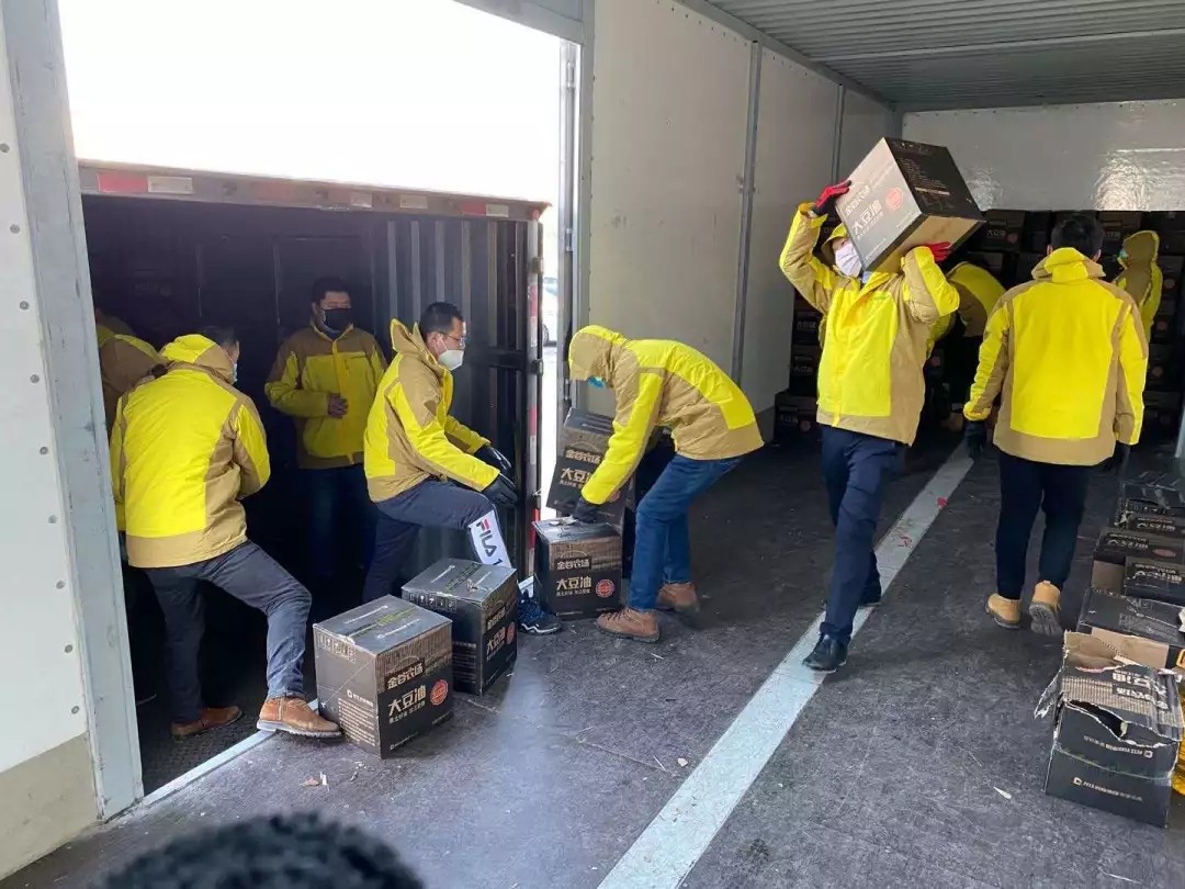 疫情當前,裝卸工人緊缺,農投員工親自上陣,價值百萬元的物資在農投人的接力下,一箱箱“金谷農場”大米、一箱箱大豆油和蘇打水運進捐贈醫(yī)院,及時送到奮戰(zhàn)一線的醫(yī)務工作者手中,責任和愛在農投人的手中傳遞、傳播……