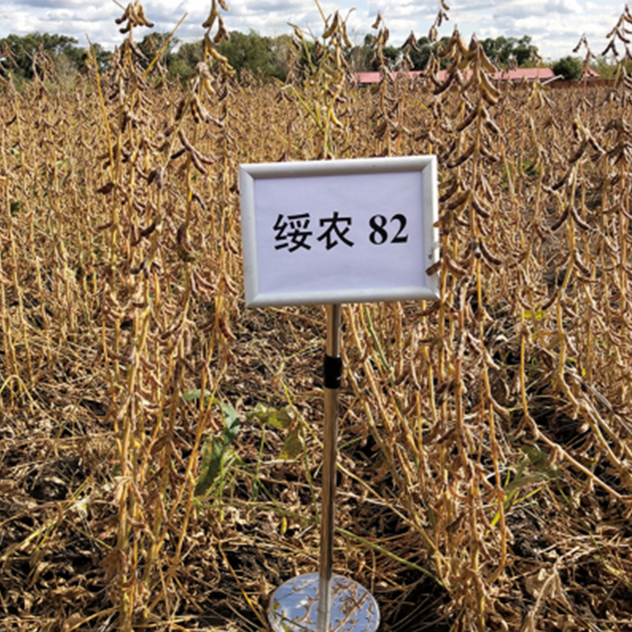 紫花尖葉,灰色茸毛,無限結(jié)莢習性,株高95厘米左右,有分枝,莢彎鐮形,成熟時呈褐色。子粒圓形,種皮黃色,種臍黃色,無光澤,百粒重21.2克左右。品質(zhì)分析平均結(jié)果:蛋白質(zhì)含量39.47%,脂肪含量20.15%。中抗灰斑病。在適應區(qū)出苗至成熟生育日數(shù)120天左右,需≥10°C活動積溫2400°C左右。
